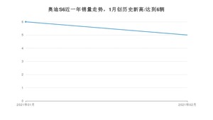 2021年2月,奥迪S6销量为5辆,同比增长400%,环比下降16.67%。1-2月份,奥迪S6销量为11辆,同比增长1%。在最近1年中,奥迪S6销量在2021年01月达到最高,销量为6辆。