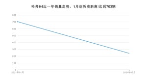 2021年2月,哈弗H4销量为240辆,同比下降21.05%,环比下降65.86%。1-2月份,哈弗H4销量为943辆,同比下降71.6%。在最近1年中,哈弗H4销量在2021年01月达到最高,销量为703辆。