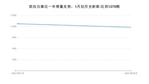 2021年2月,欧拉白猫销量为1174辆,环比下降7.56%。1-2月份,欧拉白猫销量为2444辆,在最近1年中,欧拉白猫销量在2021年01月达到最高,销量为1270辆。