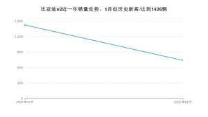 2021年2月,比亚迪e2销量为739辆,同比增长147.16%,环比下降48.18%。1-2月份,比亚迪e2销量为2165辆,同比增长40.4%。在最近1年中,比亚迪e2销量在2021年01月达到最高,销量为1426辆。
