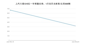 2021年2月,上汽大通G10销量为318辆,同比增长152.38%,环比下降52.47%。1-2月份,上汽大通G10销量为987辆,同比增长13.45%。在最近1年中,上汽大通G10销量在2021年01月达到最高,销量为669辆。