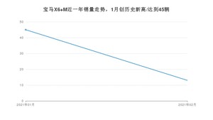2021年2月,宝马品牌总体销量达到49223辆,其中宝马X6 M销量达到13辆,占品牌总销量的0.03%。