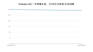 2021年2月,Polestar 2销量为29辆,环比下降3.33%。1-2月份,Polestar 2销量为59辆,在最近1年中,Polestar 2销量在2021年01月达到最高,销量为30辆。