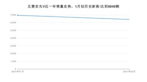 2021年2月,五菱品牌总体销量达到52485辆,其中五菱宏光V销量达到6413辆,占品牌总销量的12.22%。