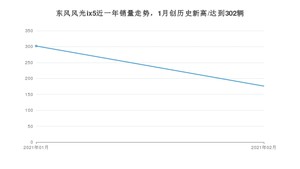 2021年2月,东风风光ix5销量为176辆,同比增长36.43%,环比下降41.72%。1-2月份,东风风光ix5销量为478辆,同比下降64.46%。在最近1年中,东风风光ix5销量在2021年01月达到最高,销量为302辆。