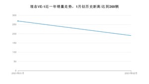 2021年2月,理念VE-1销量为190辆,同比增长1%,环比下降29.37%。1-2月份,理念VE-1销量为459辆,同比增长378.13%。在最近1年中,理念VE-1销量在2021年01月达到最高,销量为269辆。