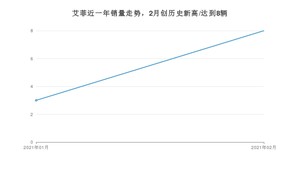 2021年2月,艾菲销量为8辆,环比增长166.67%。1-2月份,艾菲销量为11辆,同比增长57.14%。在最近1年中,艾菲销量在2021年02月达到最高,销量为8辆。