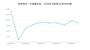 2020年10月,帕萨特销量为10370辆,同比下降47.53%,环比下降11.8%。1-10月份,帕萨特销量为98481辆,同比下降30.77%。在最近1年中,帕萨特销量在2020年01月达到最高,销量为16757辆。