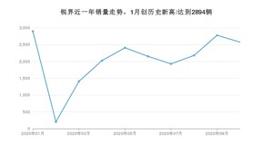 2020年10月,锐界销量为2574辆,同比下降4.42%,环比下降7.34%。1-10月份,锐界销量为20544辆,同比下降13.93%。在最近1年中,锐界销量在2020年01月达到最高,销量为2894辆。