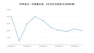 2020年10月,阿特兹销量为1953辆,同比下降41.37%,环比下降13.62%。1-10月份,阿特兹销量为25498辆,同比下降14.92%。在最近1年中,阿特兹销量在2020年04月达到最高,销量为4001辆。