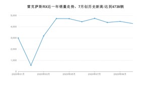 2020年10月,雷克萨斯RX销量为4278辆,同比增长49.69%,环比下降4.3%。1-10月份,雷克萨斯RX销量为38454辆,同比增长35.03%。在最近1年中,雷克萨斯RX销量在2020年07月达到最高,销量为4739辆。