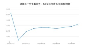 2020年10月,途胜销量为3335辆,同比下降10.54%,环比增长17.31%。1-10月份,途胜销量为26522辆,同比增长22.05%。在最近1年中,途胜销量在2020年01月达到最高,销量为5238辆。