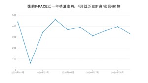 2020年10月,捷豹F-PACE销量为327辆,同比下降22.14%,环比下降17.22%。1-10月份,捷豹F-PACE销量为3443辆,同比下降23.59%。在最近1年中,捷豹F-PACE销量在2020年04月达到最高,销量为461辆。