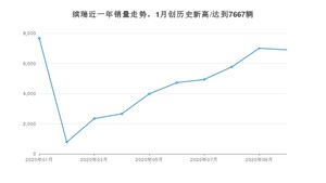 2020年10月,缤瑞销量为6902辆,同比增长17.5%,环比下降1.51%。1-10月份,缤瑞销量为46764辆,同比增长1.7%。在最近1年中,缤瑞销量在2020年01月达到最高,销量为7667辆。