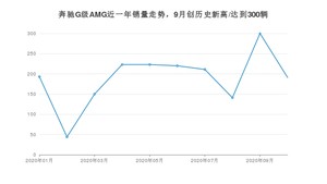 2020年10月,奔驰G级AMG销量为191辆,同比增长6.7%,环比下降36.33%。1-10月份,奔驰G级AMG销量为1896辆,同比增长13.26%。在最近1年中,奔驰G级AMG销量在2020年09月达到最高,销量为300辆。