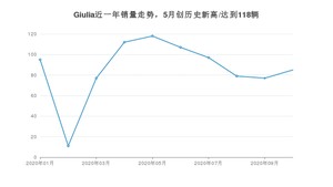 2020年10月,Giulia销量为85辆,同比增长77.08%,环比增长10.39%。1-10月份,Giulia销量为858辆,同比下降12.27%。在最近1年中,Giulia销量在2020年05月达到最高,销量为118辆。