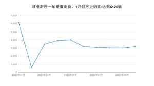 2020年10月,福睿斯销量为3170辆,同比下降47.66%,环比增长5.74%。1-10月份,福睿斯销量为33586辆,同比下降35.23%。在最近1年中,福睿斯销量在2020年01月达到最高,销量为6126辆。