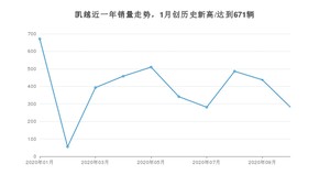 2020年10月,凯越销量为282辆,同比增长141.03%,环比下降35.47%。1-10月份,凯越销量为3914辆,同比下降49.78%。在最近1年中,凯越销量在2020年01月达到最高,销量为671辆。