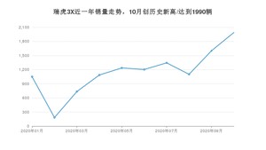 瑞虎3X 10月份销量数据发布 共1990台(2020年)