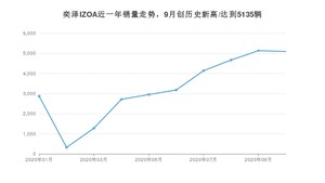 2020年10月,奕泽IZOA销量为5094辆,同比增长3.01%,环比下降0.8%。1-10月份,奕泽IZOA销量为32353辆,同比下降30.43%。在最近1年中,奕泽IZOA销量在2020年09月达到最高,销量为5135辆。