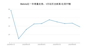 2020年10月,Stelvio销量为38辆,同比下降17.39%,环比下降19.15%。1-10月份,Stelvio销量为446辆,同比下降93.35%。在最近1年中,Stelvio销量在2020年01月达到最高,销量为77辆。