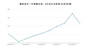 2020年10月,撼路者销量为231辆,同比增长40%,环比下降34.19%。1-10月份,撼路者销量为1504辆,同比下降39.28%。在最近1年中,撼路者销量在2020年09月达到最高,销量为351辆。