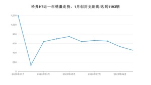 2020年10月,哈弗H7销量为455辆,同比下降60.12%,环比下降14.31%。1-10月份,哈弗H7销量为6355辆,同比下降29.69%。在最近1年中,哈弗H7销量在2020年01月达到最高,销量为1193辆。