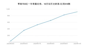 2020年10月,零跑T03销量为919辆,环比增长11.66%。1-10月份,零跑T03销量为3307辆,在最近1年中,零跑T03销量在2020年10月达到最高,销量为919辆。