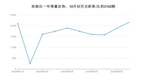 2020年10月,奕跑销量为2162辆,同比下降36.39%,环比增长14.94%。1-10月份,奕跑销量为16544辆,同比下降42.4%。在最近1年中,奕跑销量在2020年10月达到最高,销量为2162辆。