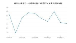 2020年10月,高尔夫·嘉旅销量为310辆,同比下降64.65%,环比下降8.01%。1-10月份,高尔夫·嘉旅销量为4278辆,同比下降68.88%。在最近1年中,高尔夫·嘉旅销量在2020年08月达到最高,销量为609辆。