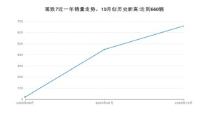 2020年10月,观致7销量为660辆,环比增长47.32%。1-10月份,观致7销量为1128辆,在最近1年中,观致7销量在2020年10月达到最高,销量为660辆。