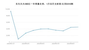 2020年10月,东风风光580销量为4547辆,同比下降25.45%,环比增长1.9%。1-10月份,东风风光580销量为40408辆,同比下降7.99%。在最近1年中,东风风光580销量在2020年01月达到最高,销量为9310辆。