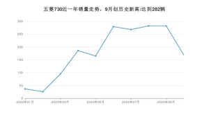 2020年10月,五菱730销量为169辆,环比下降40.07%。1-10月份,五菱730销量为1789辆,在最近1年中,五菱730销量在2020年09月达到最高,销量为282辆。