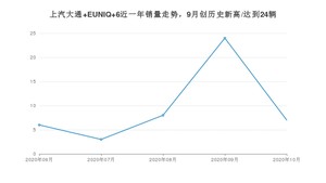 2020年10月,上汽大通 EUNIQ 6销量为7辆,环比下降70.83%。1-10月份,上汽大通 EUNIQ 6销量为48辆,在最近1年中,上汽大通 EUNIQ 6销量在2020年09月达到最高,销量为24辆。