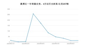 2020年10月,翼搏销量为14辆,同比下降86%,环比持平。1-10月份,翼搏销量为645辆,同比下降74.98%。在最近1年中,翼搏销量在2020年04月达到最高,销量为257辆。