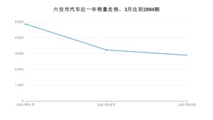 2021年3月,六安市汽车总销量为2884辆,同比增长28.69%,环比下降10.46%。1-3月份,六安市总销量为10963辆,同比增长48.69%。在最近1年中,六安市销量在2021年01月达到最高,销量为4858辆。