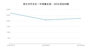 2021年3月,淮北市汽车总销量为2219辆,同比增长67.09%,环比增长6.32%。1-3月份,淮北市总销量为6975辆,同比增长65.83%。在最近1年中,淮北市销量在2021年01月达到最高,销量为2669辆。