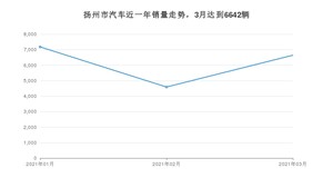 2021年3月,扬州市汽车总销量为6642辆,同比增长69.92%,环比增长44.71%。1-3月份,扬州市总销量为18410辆,同比增长84.6%。在最近1年中,扬州市销量在2021年01月达到最高,销量为7178辆。