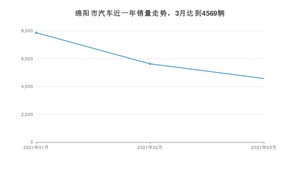 2021年3月,绵阳市汽车总销量为4569辆,同比增长27.95%,环比下降18.74%。1-3月份,绵阳市总销量为18048辆,同比增长40.88%。在最近1年中,绵阳市销量在2021年01月达到最高,销量为7856辆。