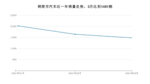 2021年3月,铜陵市汽车总销量为1481辆,同比增长38.15%,环比下降9.81%。1-3月份,铜陵市总销量为5143辆,同比增长69.23%。在最近1年中,铜陵市销量在2021年01月达到最高,销量为2020辆。