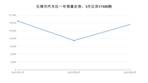 2021年3月,无锡市汽车总销量为17400辆,同比增长49.78%,环比增长55.05%。1-3月份,无锡市总销量为47334辆,同比增长67.92%。在最近1年中,无锡市销量在2021年01月达到最高,销量为18712辆。