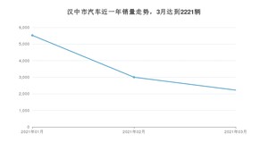 2021年3月,汉中市汽车总销量为2221辆,同比增长6.63%,环比下降25.97%。1-3月份,汉中市总销量为10745辆,同比增长54.27%。在最近1年中,汉中市销量在2021年01月达到最高,销量为5524辆。