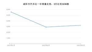 2021年3月,咸阳市汽车总销量为3239辆,同比增长15.93%,环比增长11.15%。1-3月份,咸阳市总销量为11704辆,同比增长41.88%。在最近1年中,咸阳市销量在2021年01月达到最高,销量为5551辆。
