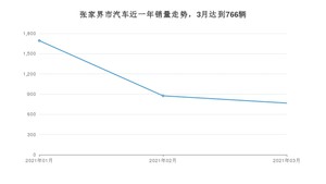 2021年3月,张家界市汽车总销量为766辆,同比增长8.65%,环比下降12.46%。1-3月份,张家界市总销量为3334辆,同比增长24.03%。在最近1年中,张家界市销量在2021年01月达到最高,销量为1693辆。