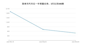 2021年3月,陇南市汽车总销量为486辆,同比下降11.96%,环比下降33.15%。1-3月份,陇南市总销量为3120辆,同比增长36.42%。在最近1年中,陇南市销量在2021年01月达到最高,销量为1907辆。
