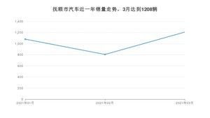 2021年3月,抚顺市汽车总销量为1208辆,同比增长38.37%,环比增长49.88%。1-3月份,抚顺市总销量为3095辆,同比增长87.01%。在最近1年中,抚顺市销量在2021年03月达到最高,销量为1208辆。