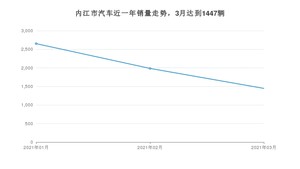 2021年3月,内江市汽车总销量为1447辆,同比增长17.36%,环比下降27.1%。1-3月份,内江市总销量为6084辆,同比增长46.57%。在最近1年中,内江市销量在2021年01月达到最高,销量为2652辆。