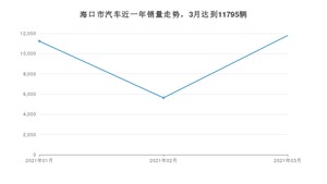 2021年3月,海口市汽车总销量为11795辆,同比增长207.48%,环比增长109.47%。1-3月份,海口市总销量为28660辆,同比增长146.52%。在最近1年中,海口市销量在2021年03月达到最高,销量为11795辆。