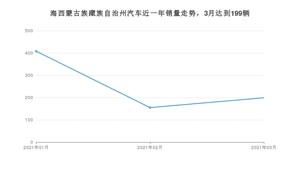 2021年3月,海西蒙古族藏族自治州汽车总销量为199辆,同比下降15.32%,环比增长28.39%。1-3月份,海西蒙古族藏族自治州总销量为762辆,同比增长24.31%。在最近1年中,海西蒙古族藏族自治州销量在2021年01月达到最高,销量为408辆。
