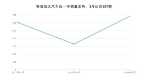 2021年3月,塔城地区汽车总销量为687辆,同比增长192.34%,环比增长108.81%。1-3月份,塔城地区总销量为1621辆,同比增长134.93%。在最近1年中,塔城地区销量在2021年03月达到最高,销量为687辆。